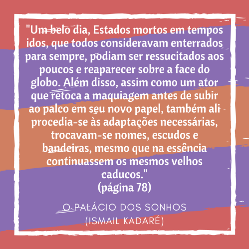 Os sonhos e suas interpretações acompanham a humanidade desde os tempos idos, mas em O Palácio dos Sonhos, Ismail Kadaré alça novos patamares nas aplicações do mundo onírico. Na trama de Kadaré a Albânia continua fazendo parte do Império Otomano (na realidade, a Albânia tornou-se independente do Império Otomano em 28/11/1912 e fez parte dele por mais de 400 anos). E, para garantir a longevidade e o poderio do Império, os governantes controlam os sonhos de todos. O Tabir Saraj, também conhecido como Palácio dos Sonhos, é a instituição encarregada de coletar os sonhos de todos os cidadãos do Império, selecioná-los, classifica-los e interpretá-los com o intuito de isolar os “sonhos-chave” nos quais o destino do Império e do seu tirano poderá ser decifrado. Continuar lendo